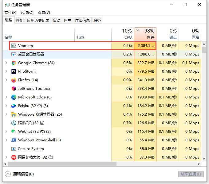 在 Windows 10 中,名为 Vmmem 的进程占用内存过高的排查分析