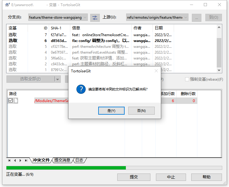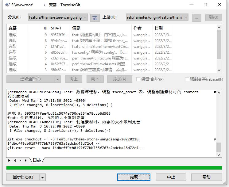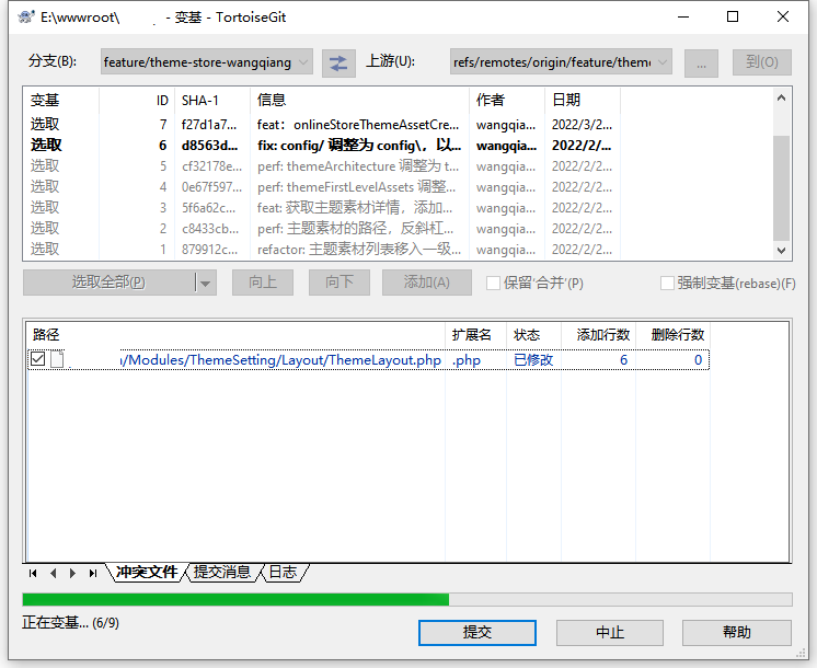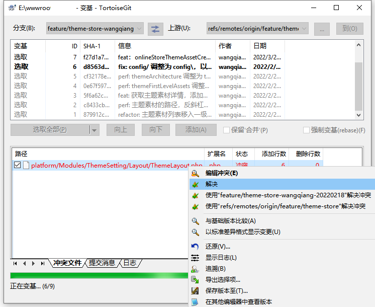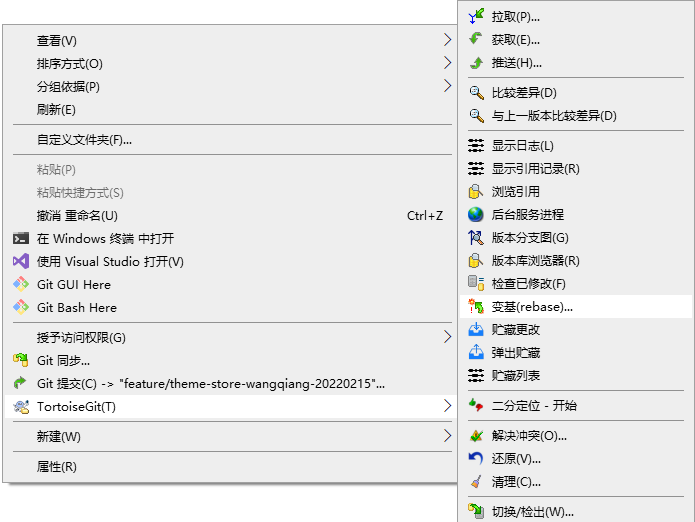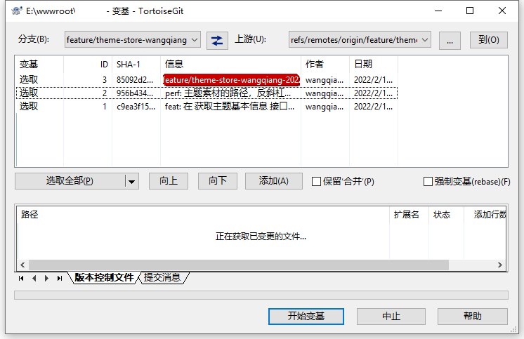 1、执行命令:git pull origin feature/theme-store –rebase,使用变基操作