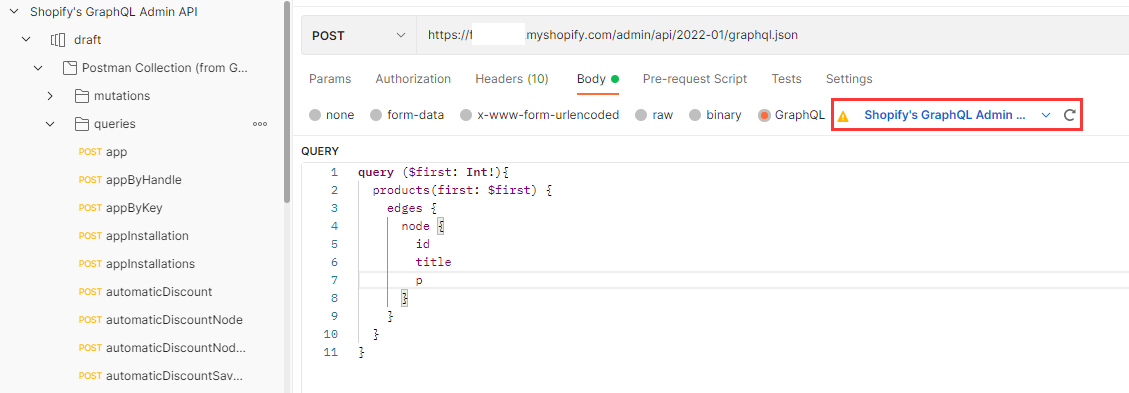 在 Postman 中请求 Shopify’s GraphQL Admin API
