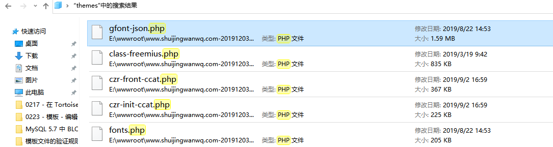 8、搜索 WordPress 中主题目录下的 .php 文件,其中最大的文件其大小为:1.59 MB。搜索 WordPress 中主题目录:的 .js 文件,其中最大的文件其大小为:402 KB。搜索 WordPress 中主题目录:的 .png 文件,其中最大的文件其大小为:911 KB。如图7
