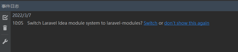 在 PhpStorm、Laravel 6 中,事件日志:Switch Laravel Idea module system to laravel-modules? Switch or don’t show this again