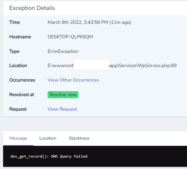 8、当以 http:// 开头时,仍然报错:Warning: dns_get_record(): DNS Query failed。