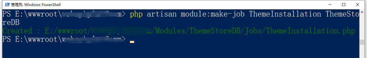 PS E:\wwwroot\object> php artisan module:make-job ThemeInstallation ThemeStoreDB Created : E:/wwwroot/object/Modules/ThemeStoreDB/Jobs/ThemeInstallation.php PS E:\wwwroot\object>