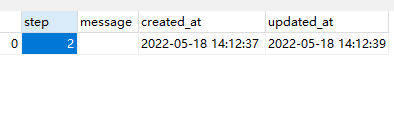 6、查看数据表 theme_installation_task 的字段 step 的值已经修改为 2。且 created_at 与 updated_at 分别为:2022-05-18 14:12:37、2022-05-18 14:12:39。修改时间较之创建时间晚了 2 秒钟。符合预期。如图3