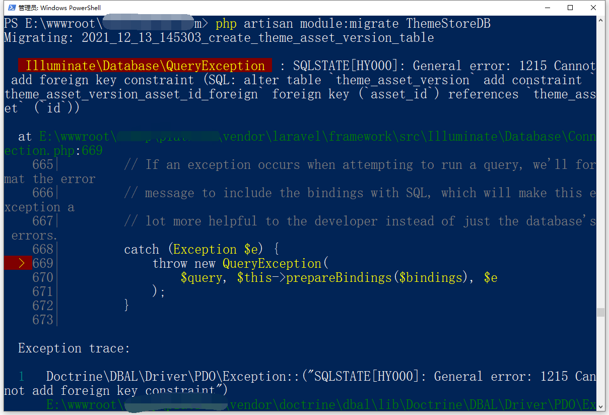 PS E:\wwwroot\object> php artisan module:migrate ThemeStoreDB