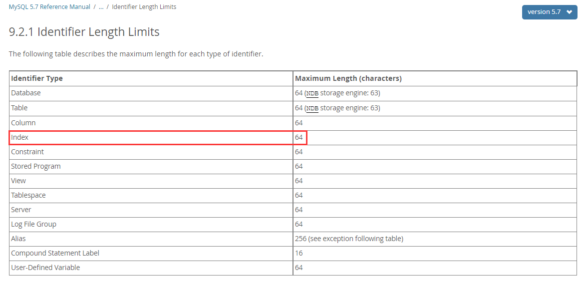 2、MySQL 5.7 的索引长度限制默认为 64 ,而 theme_installation_version_preset_theme_store_theme_version_id_index 的长度为 68。如图2