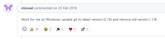 2、参考:https://github.com/glennhickey/progressiveCactus/issues/93 。Work for me on Windows: update git to latest version (2.16) and remove old version ( 1.9)。如图2