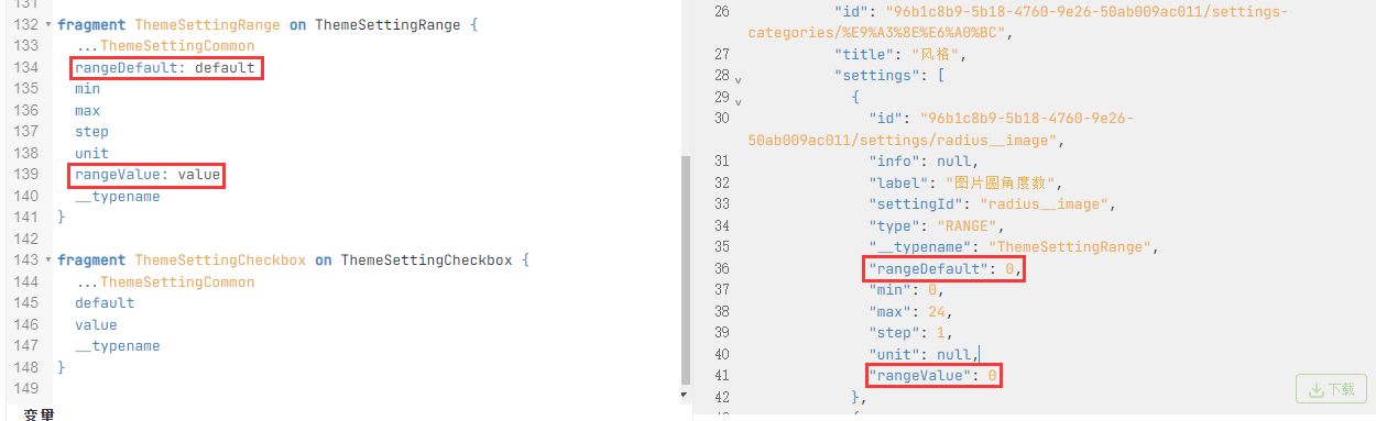 3、原因应该在于此接口类型的实现中,字段类型不一样,查询时使用了内联片段。在 ThemeSettingRange 中为 Float!。在 ThemeSettingCheckbox 中为 Boolean!。如果您在同一选择集中多次请求具有相同名称(或别名)的字段,则该字段必须返回相同的类型。如图2、图3