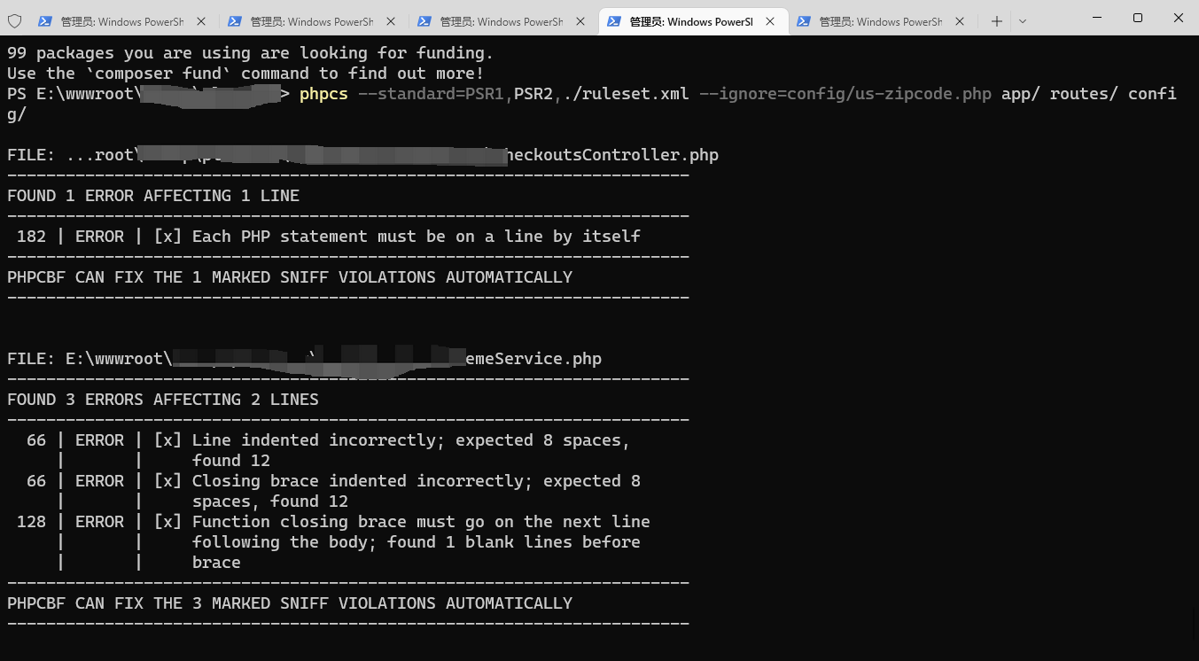 1、PHP_CodeSniffer 对 PHP、JavaScript 和 CSS 文件进行标记,以检测和修复违反一组定义的编码标准的情况。执行 phpcs 时,提示 FILE: FOUND 1 ERROR AFFECTING 1 LINE 的分析。如图1