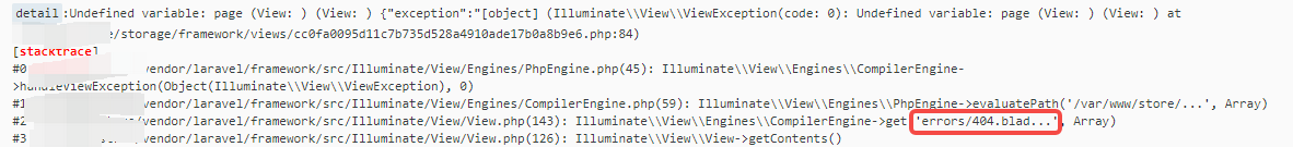 #2 object/vendor/laravel/framework/src/Illuminate/View/View.php(143): Illuminate\\View\\Engines\\CompilerEngine->get('errors/404.blad...', Array)
