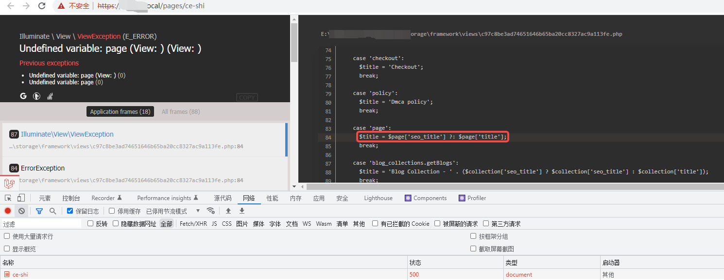 1、在 Laravel 6 中,当网址不存在时,期望响应 404 时,最终响应 500。如图1