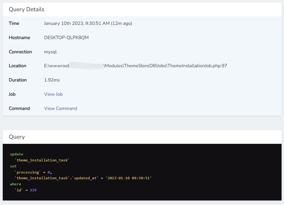 4、发现仍然存在时区为:Asia/Shanghai 的情况。不过发现时区在不断变换的模型,可能是因为在队列中不断地 save() 所导致。大概在队列中同一个模型执行了 5 次以上的 save() 方法。如图2