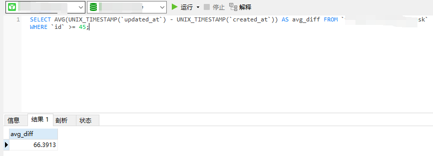 在 MySQL 5.7 查询两列值(类型为 timestamp)相减的平均数