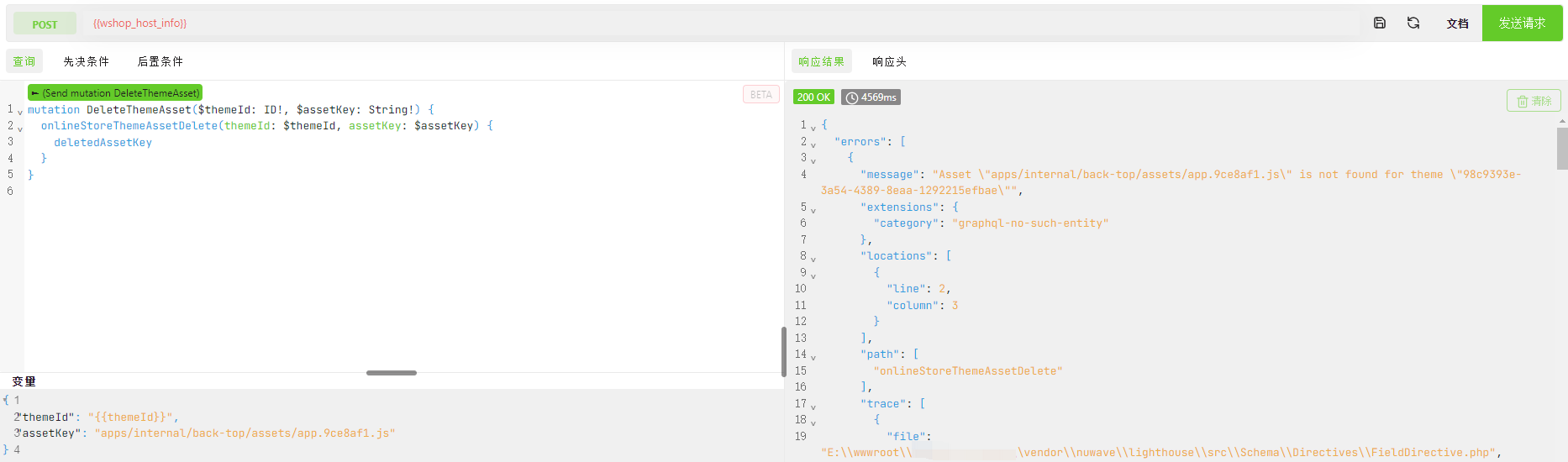 "call": "Nuwave\\Lighthouse\\GraphQL::executeParsedQuery(instance of GraphQL\\Language\\AST\\DocumentNode, instance of Nuwave\\Lighthouse\\Schema\\Context, array(2), null, 'DeleteThemeAsset')"