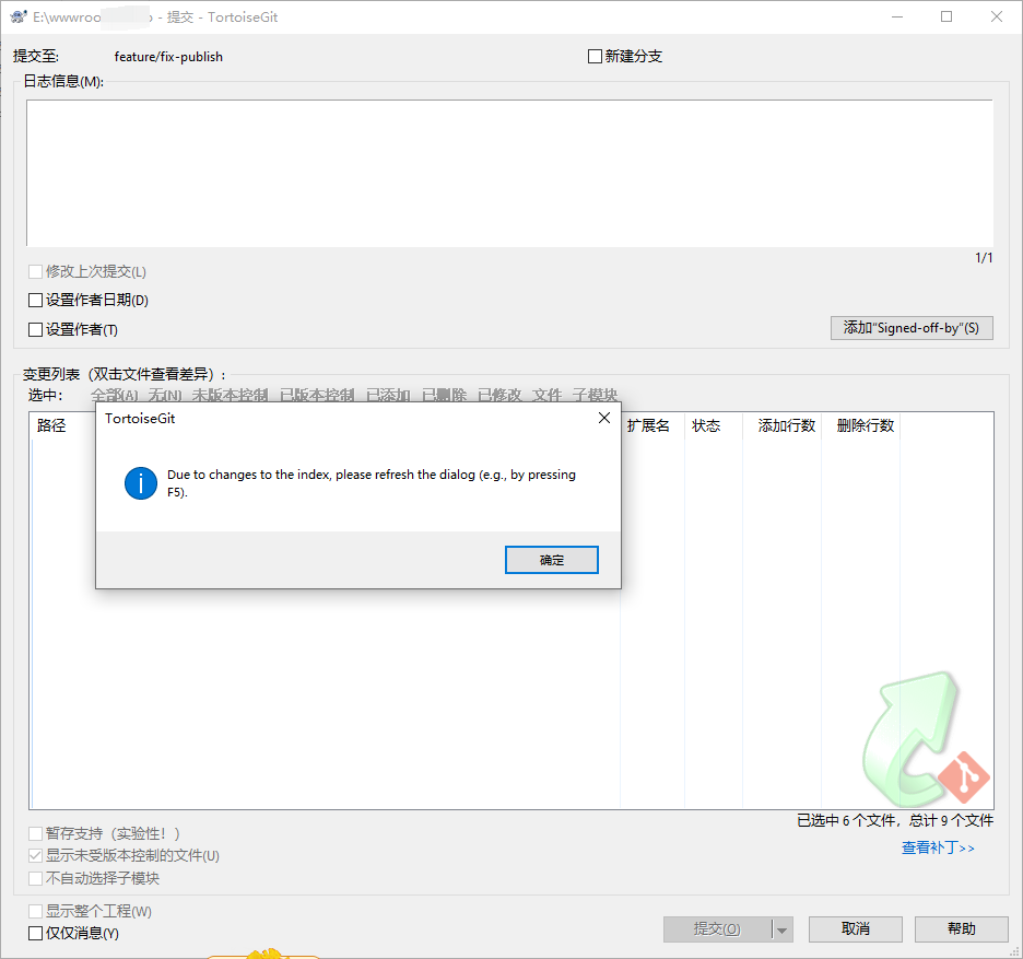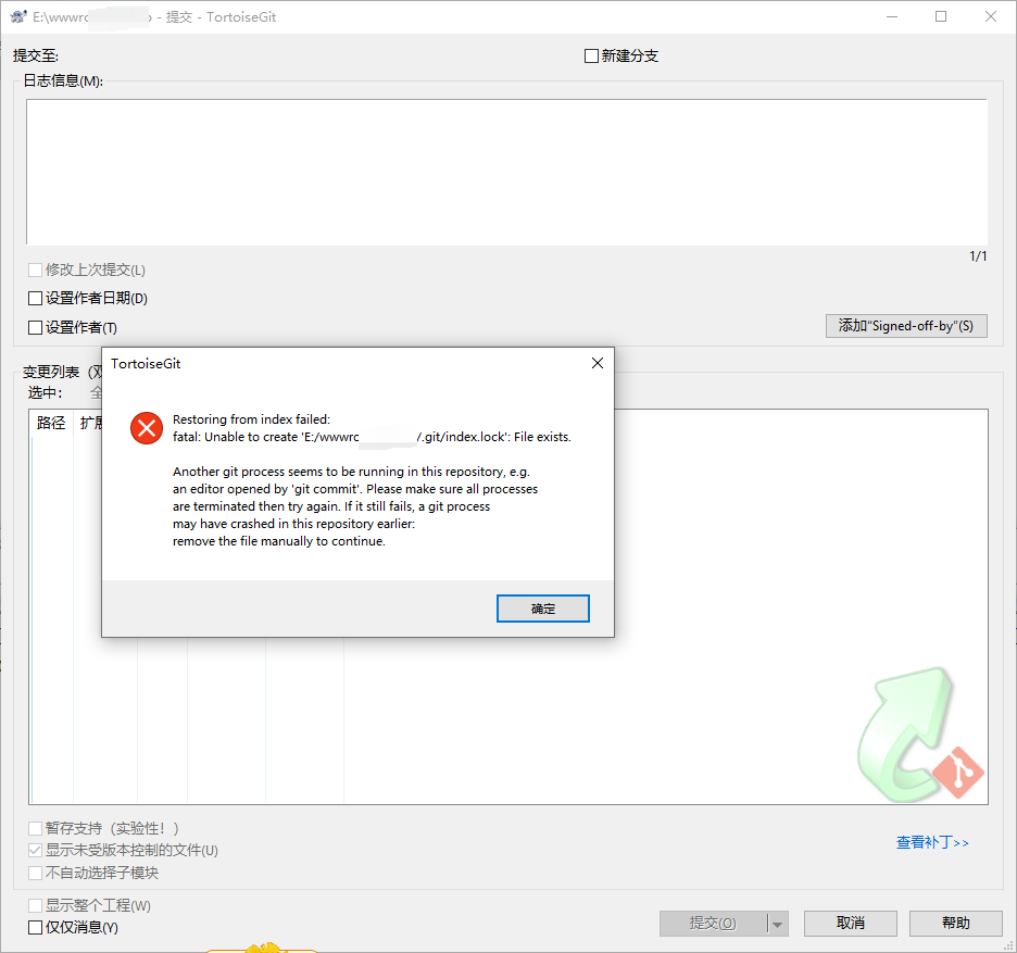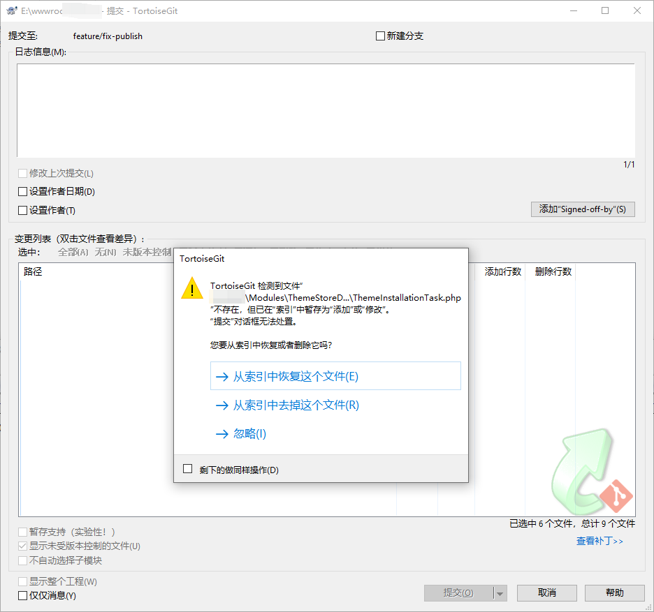 TortoiseGit 检测到文件 不存在,但已在“索引”中暂存为“添加”或“修改”。“提交”对话框无法处置。您要从索引中恢复或者删除它吗?