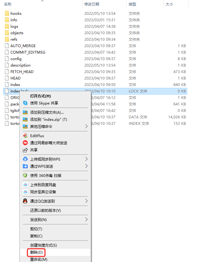3、手动删除文件:”E:/wwwroot/object/.git/index.lock”。如图3