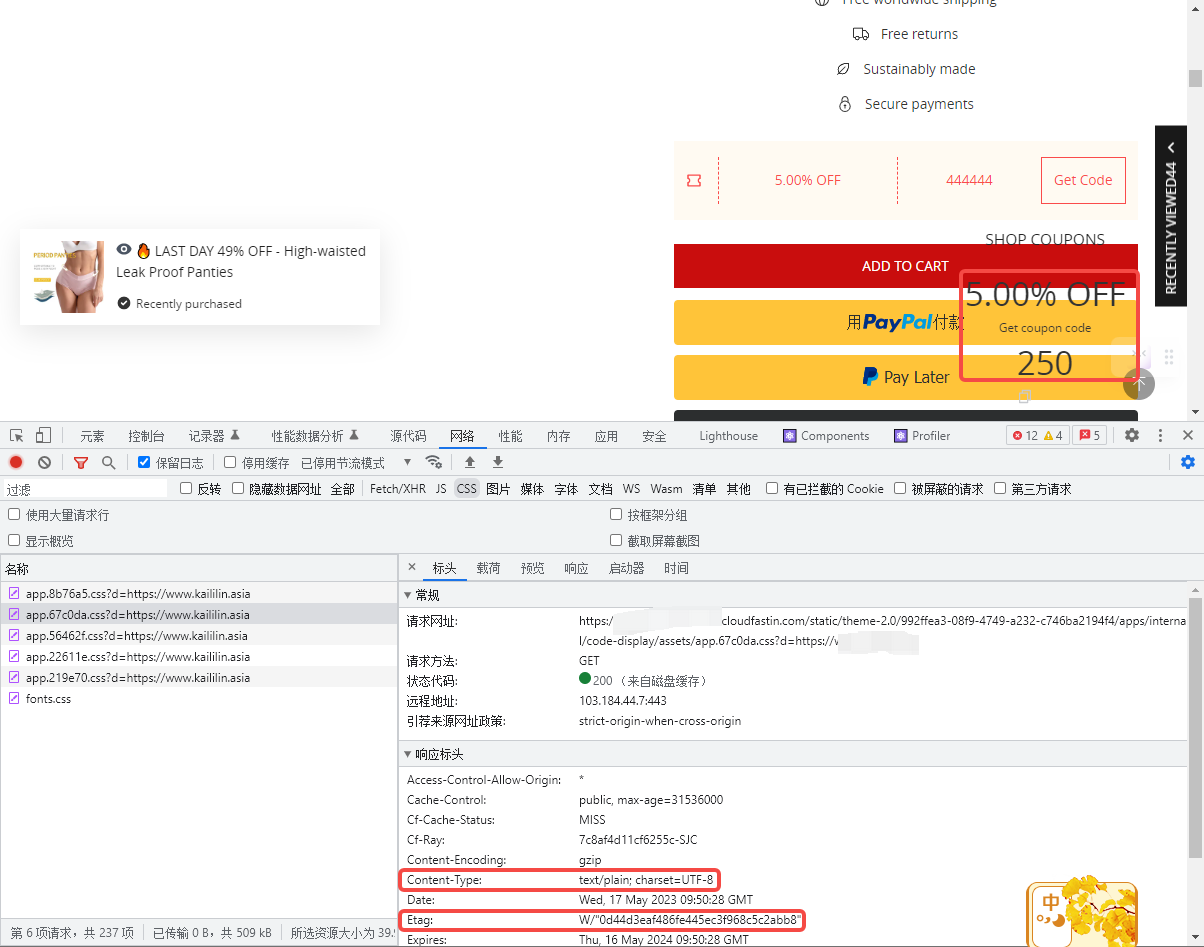 同样的 CSS 文件(其 Etag 相等),由于 响应的 Content-Type 的差异,进而导致网页界面的差异