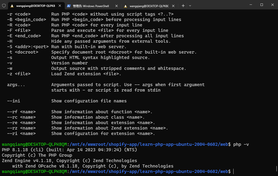 wangqiang@DESKTOP-QLPK8QM:/mnt/e/wwwroot/shopify-app/learn-php-app-ubuntu-2004-0602/web$ php -v
