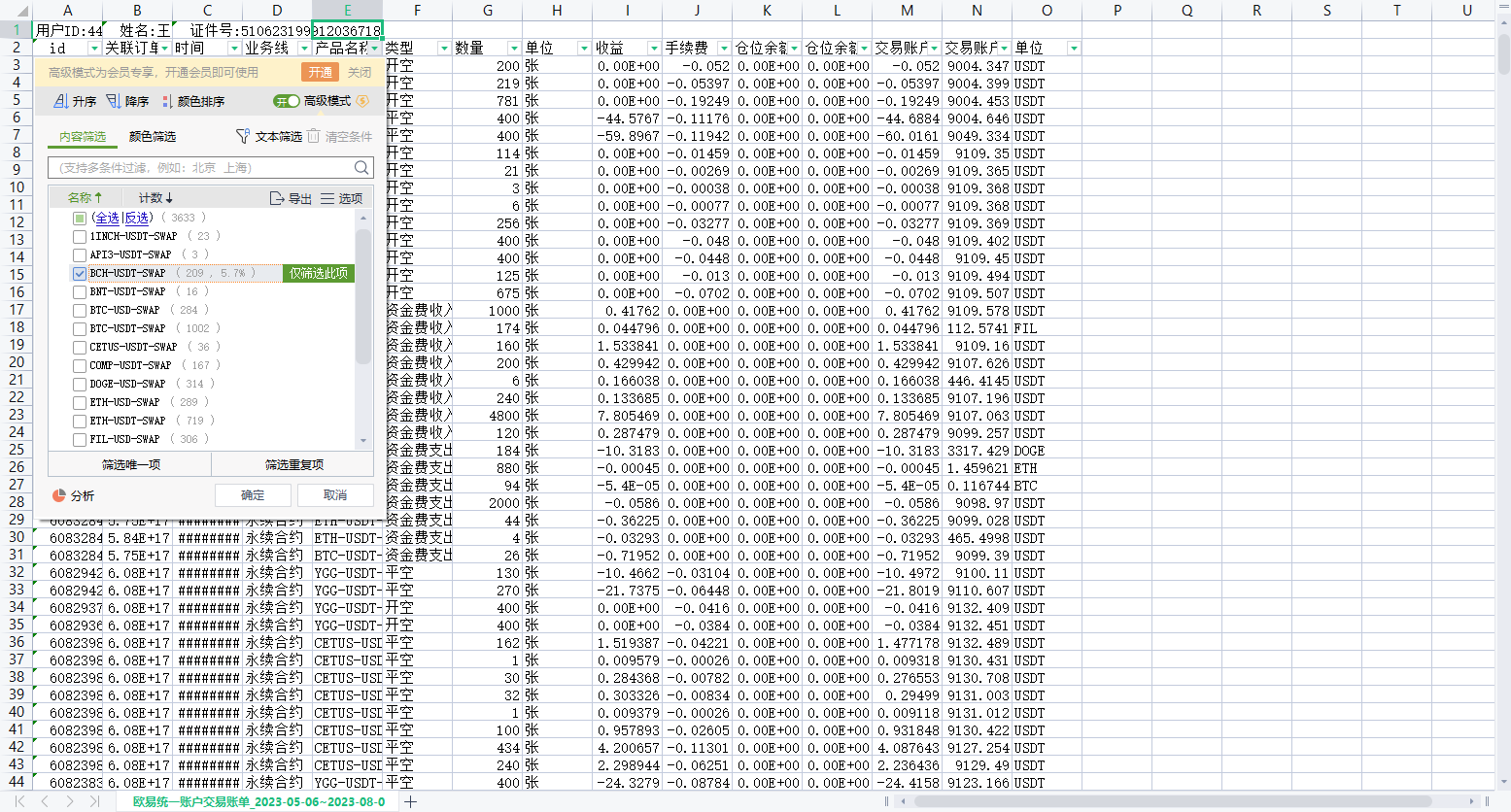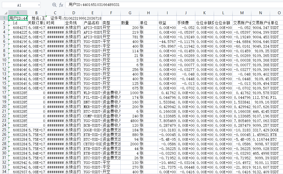 5、解压缩下载的 zip 文件,打开 CSV 文件,然后自行筛选,产品名称:YGG-USDT-SWAP,如图4