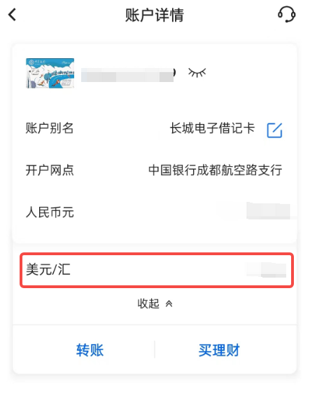 2、查看账户详情,其中存在 人民币元、美元/汇。如图1