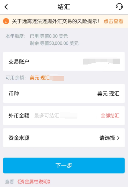 5、确认信息,结汇金额 (美元 现汇)。如图4