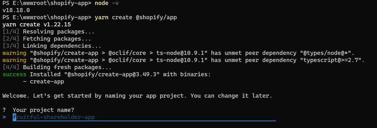 PS E:\wwwroot\shopify-app> yarn create @shopify/app