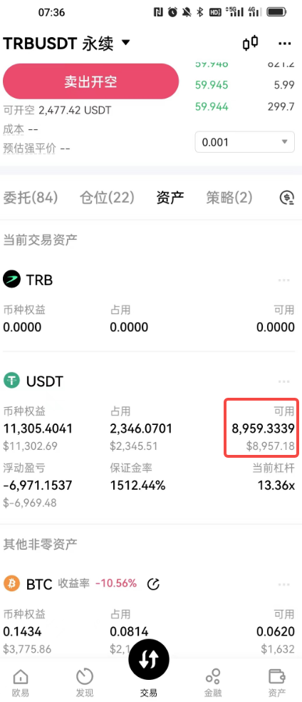7、为了防止后续出现限价委托自动撤销的情况,需要确保交易账户中的 USDT 资产大于 5000,相对来说,保险一些了。