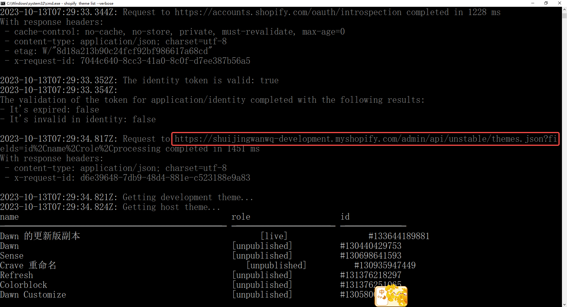 E:\wwwroot\shopify-theme\theme-20230922>shopify theme list --verbose