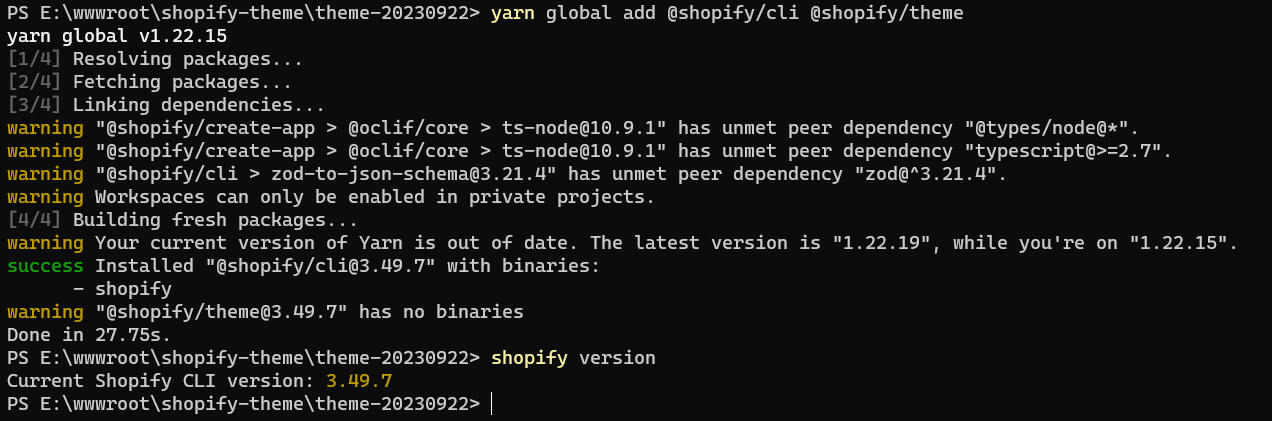 PS E:\wwwroot\shopify-theme\theme-20230922> yarn global add @shopify/cli @shopify/theme
