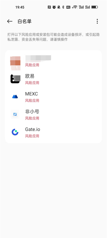 在一加手机中,提示 Gate.io 为风险应用,加入白名单的处理