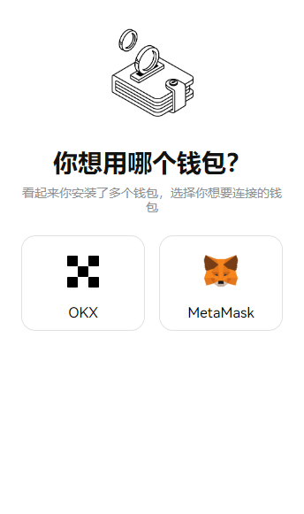 7、点击第一个连接钱包,弹出两个钱包可供选择,原因应该在于之前 OKX 是默认钱包,因此,当选择 MetaMask 时,自动在 OKX 中添加了自定义网络 BEVM。如图6