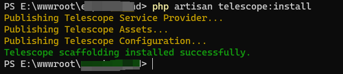 PS E:\wwwroot\erp-backend> php artisan telescope:install Publishing Telescope Service Provider... Publishing Telescope Assets... Publishing Telescope Configuration... Telescope scaffolding installed successfully.