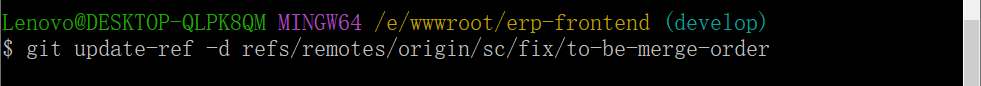 Lenovo@DESKTOP-QLPK8QM MINGW64 /e/wwwroot/xxx-frontend (develop) $ git update-ref -d refs/remotes/origin/sc/fix/to-be-merge-order