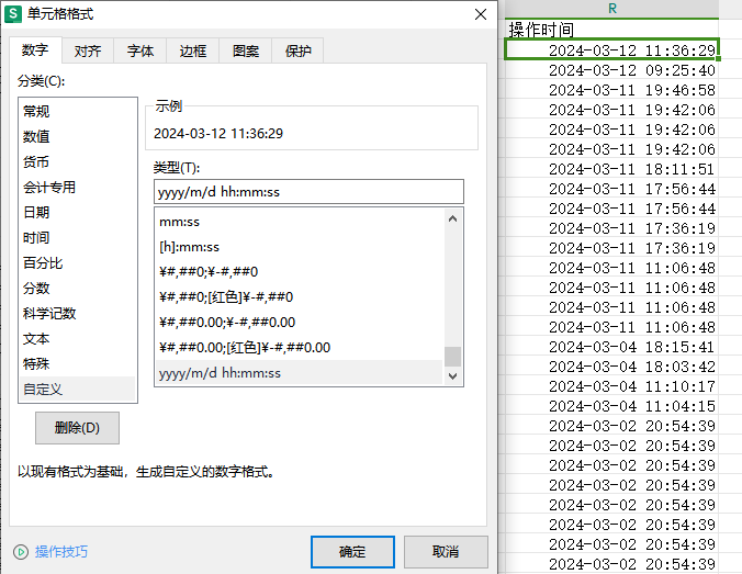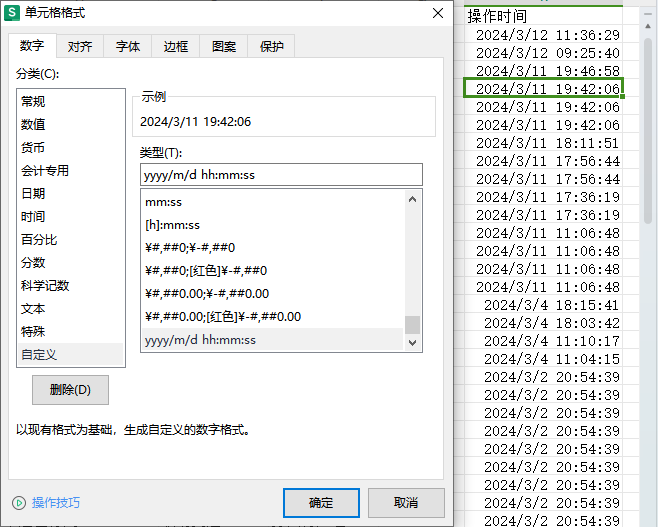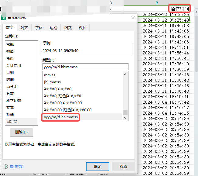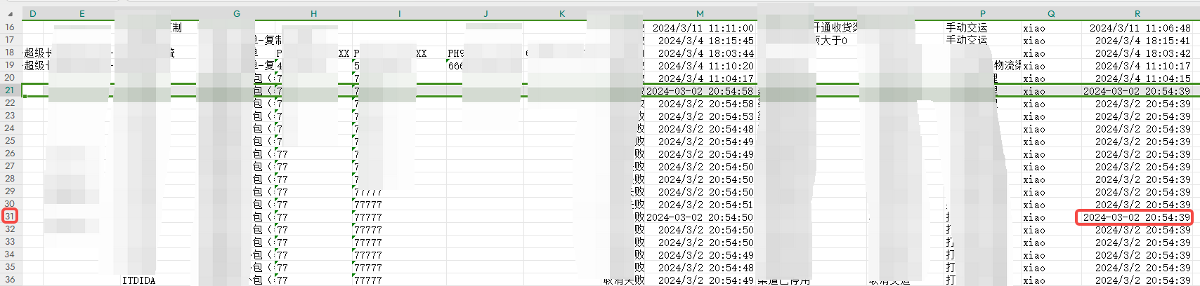 4、此方案是在将所有数据全部写入 Excel 后,再逐一覆盖写入一个个的具体的操作时间列的单元格。操作时间一列的格式符合预期。如图3