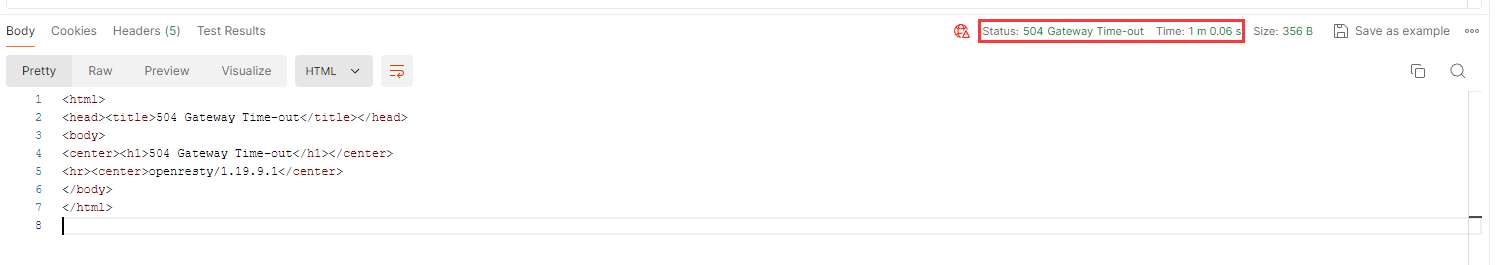 <html> <head><title>504 Gateway Time-out</title></head> <body> <center><h1>504 Gateway Time-out</h1></center> <hr><center>openresty/1.19.9.1</center> </body> </html>