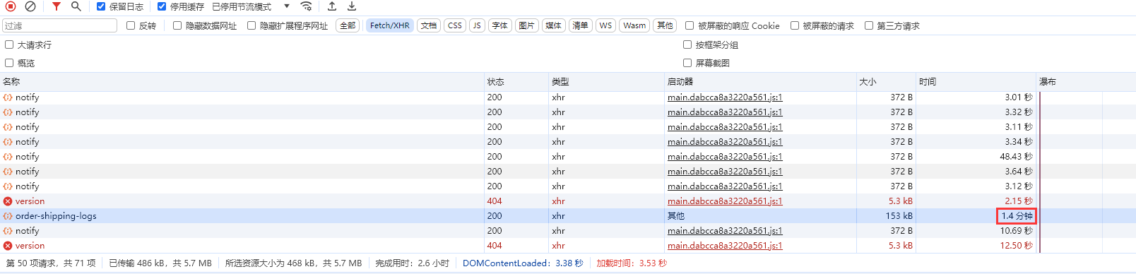 2、后端接口响应未超时,响应时长为:1 m 5.70 s。如图2