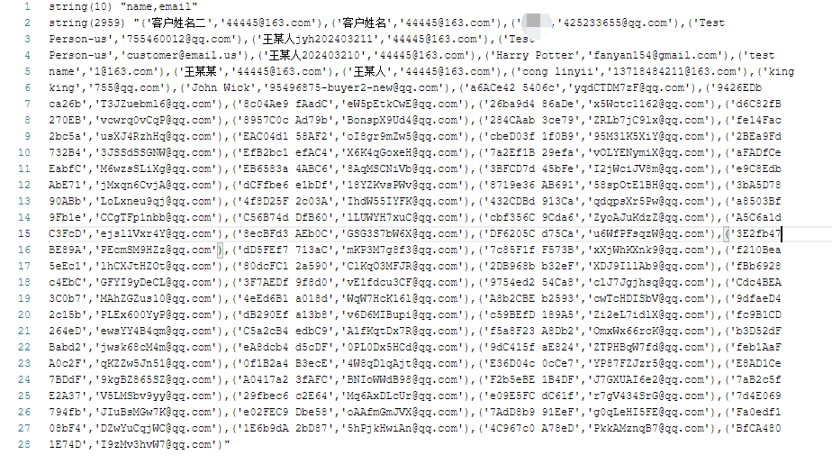 string(2959) "('客户姓名二','44445@163.com'),('客户姓名','44445@163.com')"