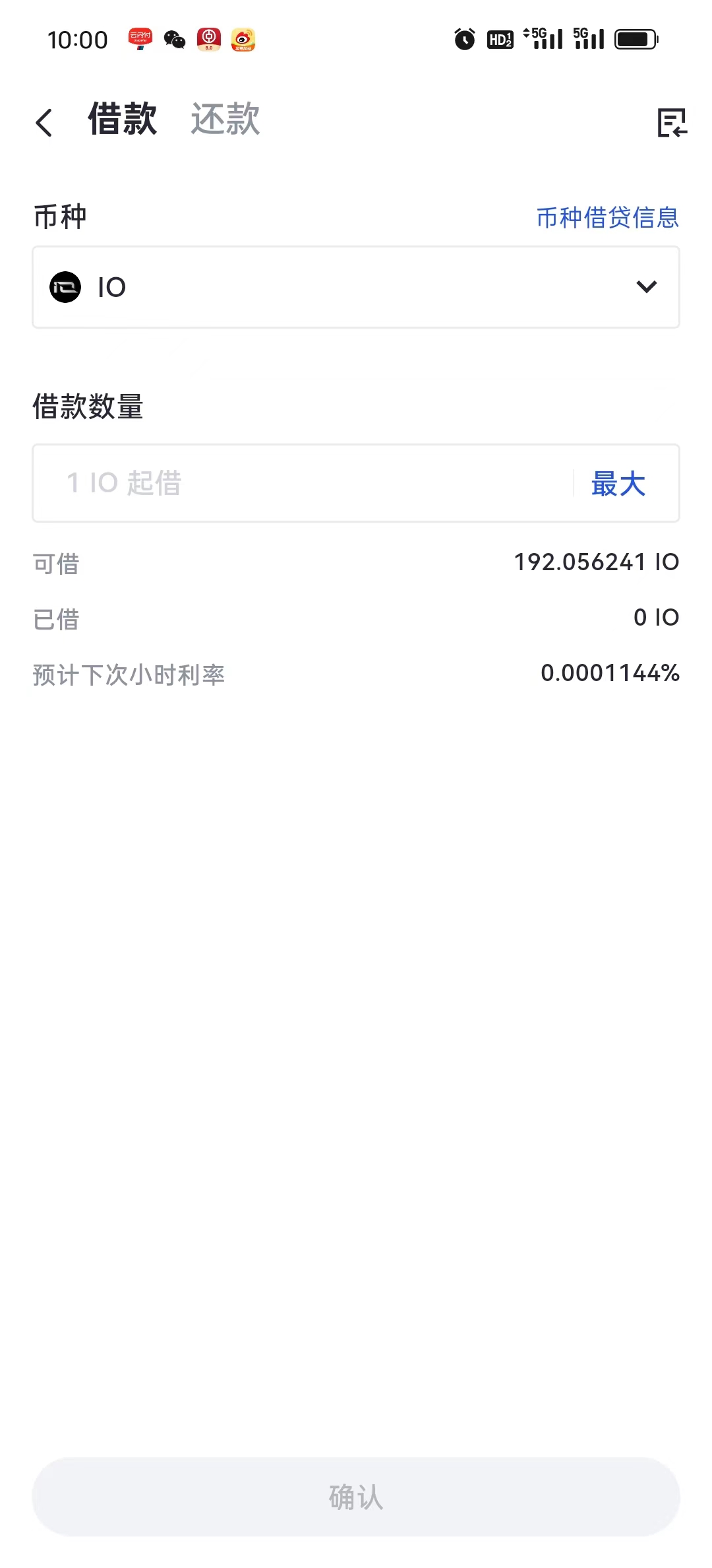5、现在唯一担心的情况是可能后续币价会下跌,所以需要想办法提前锁定利润。那么可以借出一部分 io(最大可借出多少币,与账户资产金额多少有关系了),然后卖掉。待后续 io 解锁到我手上的时候,再还掉,这样的话,即使后续币价下跌,收益率仍然是能够保证的。不过,如果后续币价继续上涨的话,就有一些郁闷了。这种情况下,可以提前卖掉一部分,不要全部卖完了。我计划当币价上涨至 8.25 时(即上涨了 10 倍),卖掉 500 枚,先收回成本了。如图5