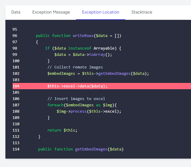 #0 E:\\wwwroot\\object\\app\\Services\\ExportService.php(104): Vtiful\\Kernel\\Excel->data(Array)