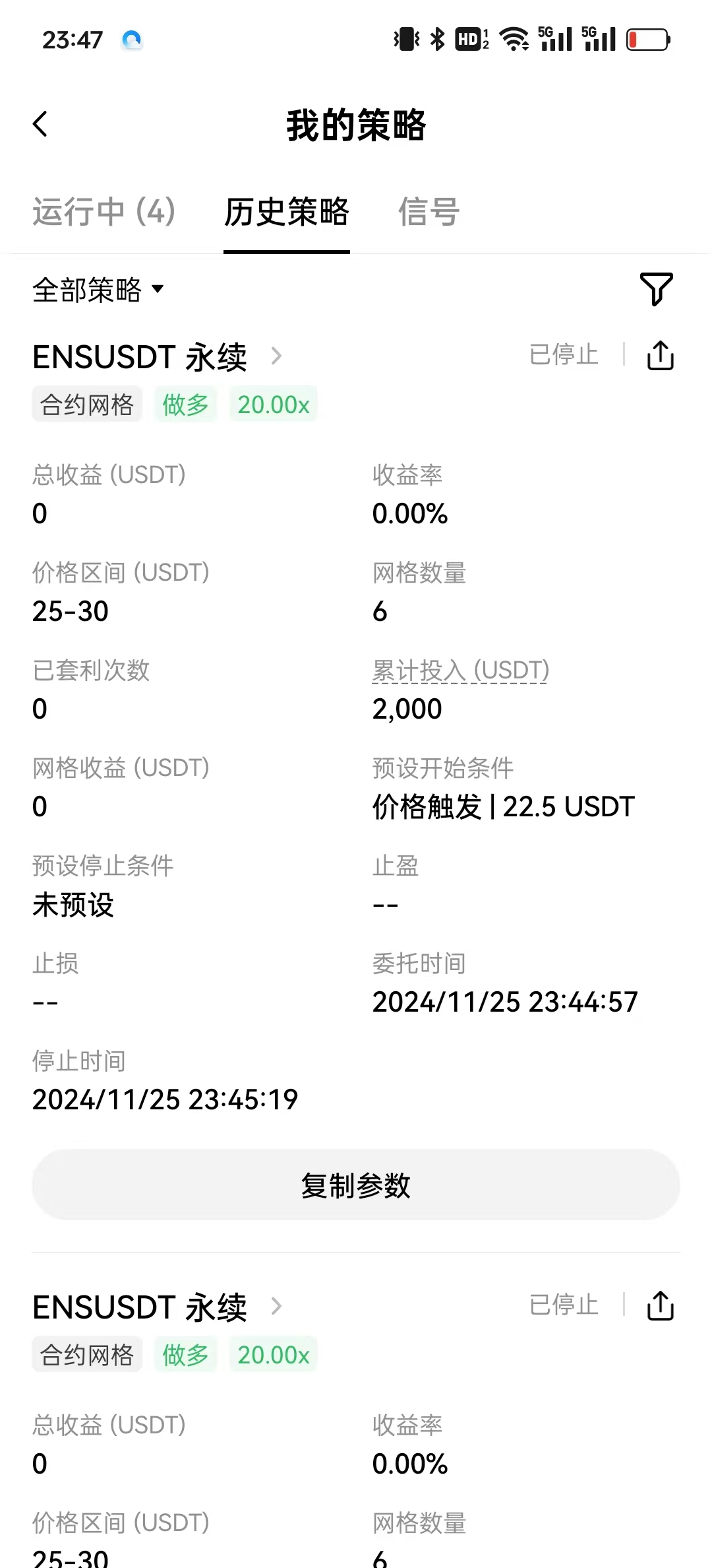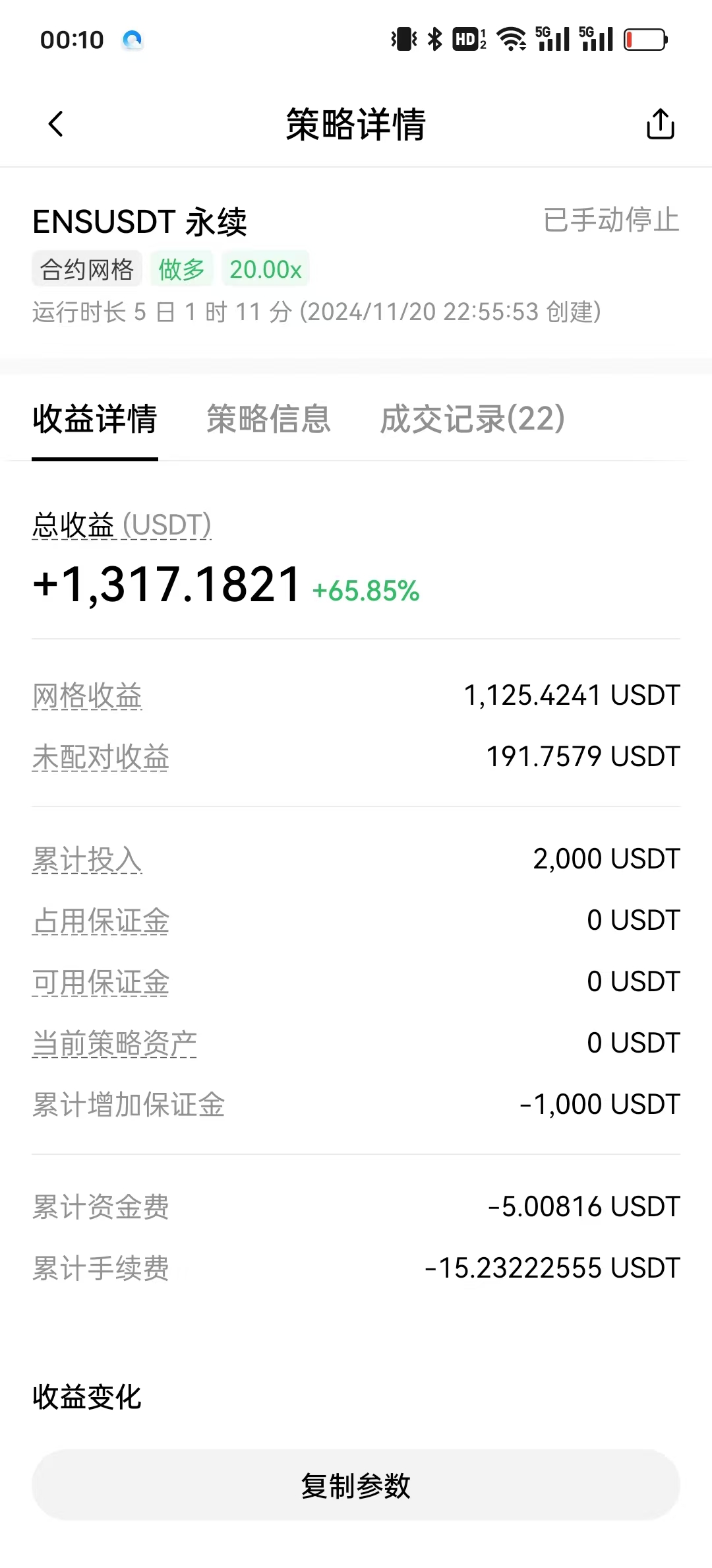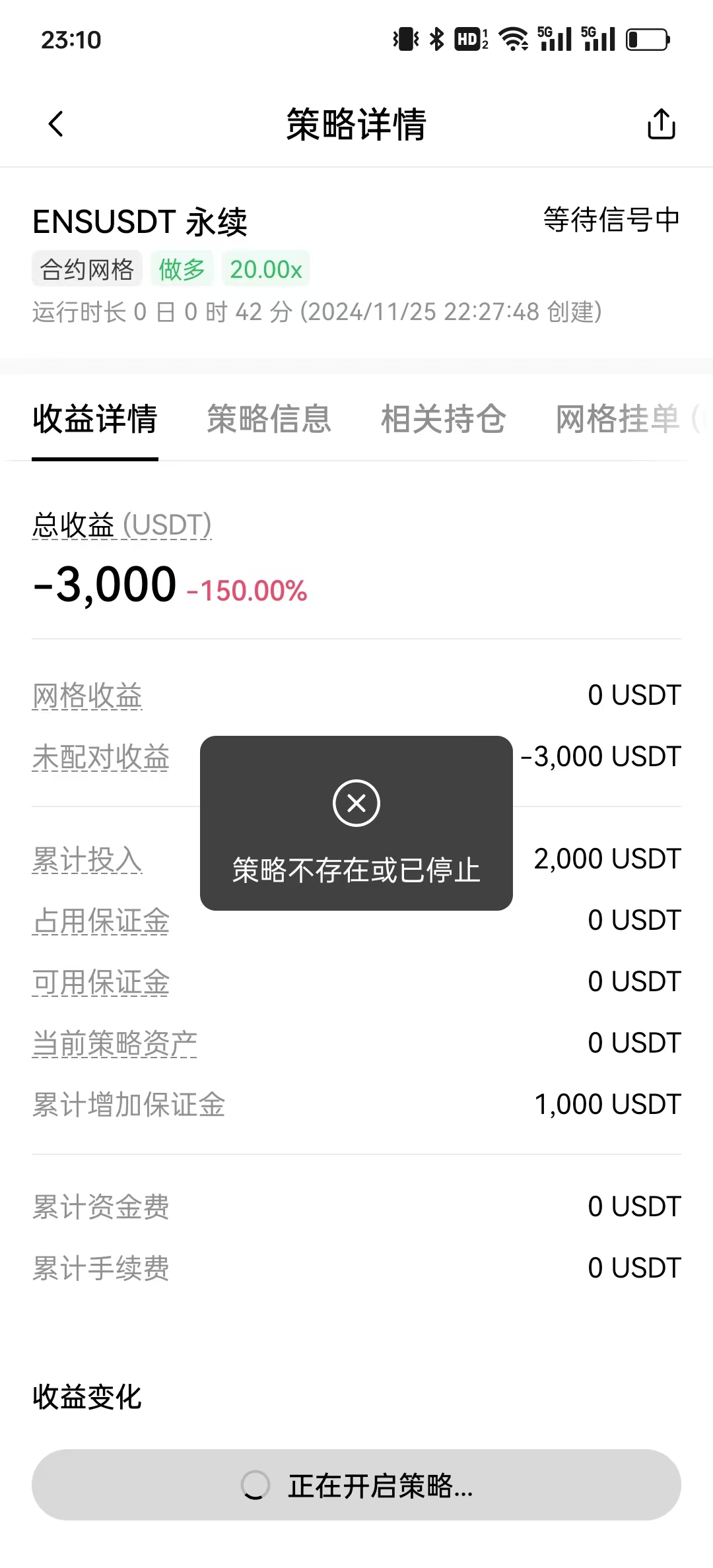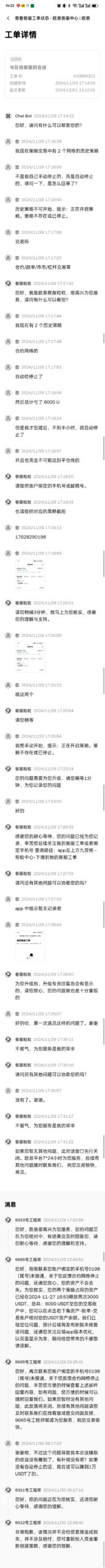 在欧易中,合约网格策略在手动创建后不久,自动停止的排查分析(联系客服,程序 Bug)