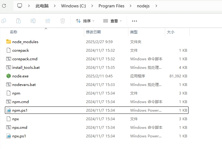2、确定文件 C:\Program Files\nodejs\npm.ps1 是存在的。如图1