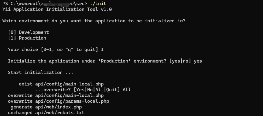在 yii2 高级项目模板中,在生产环境中,如何避免执行 init 命令后,到手动配置 config 文件期间的服务中断?
