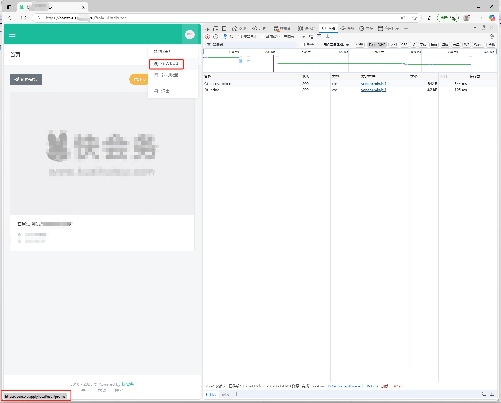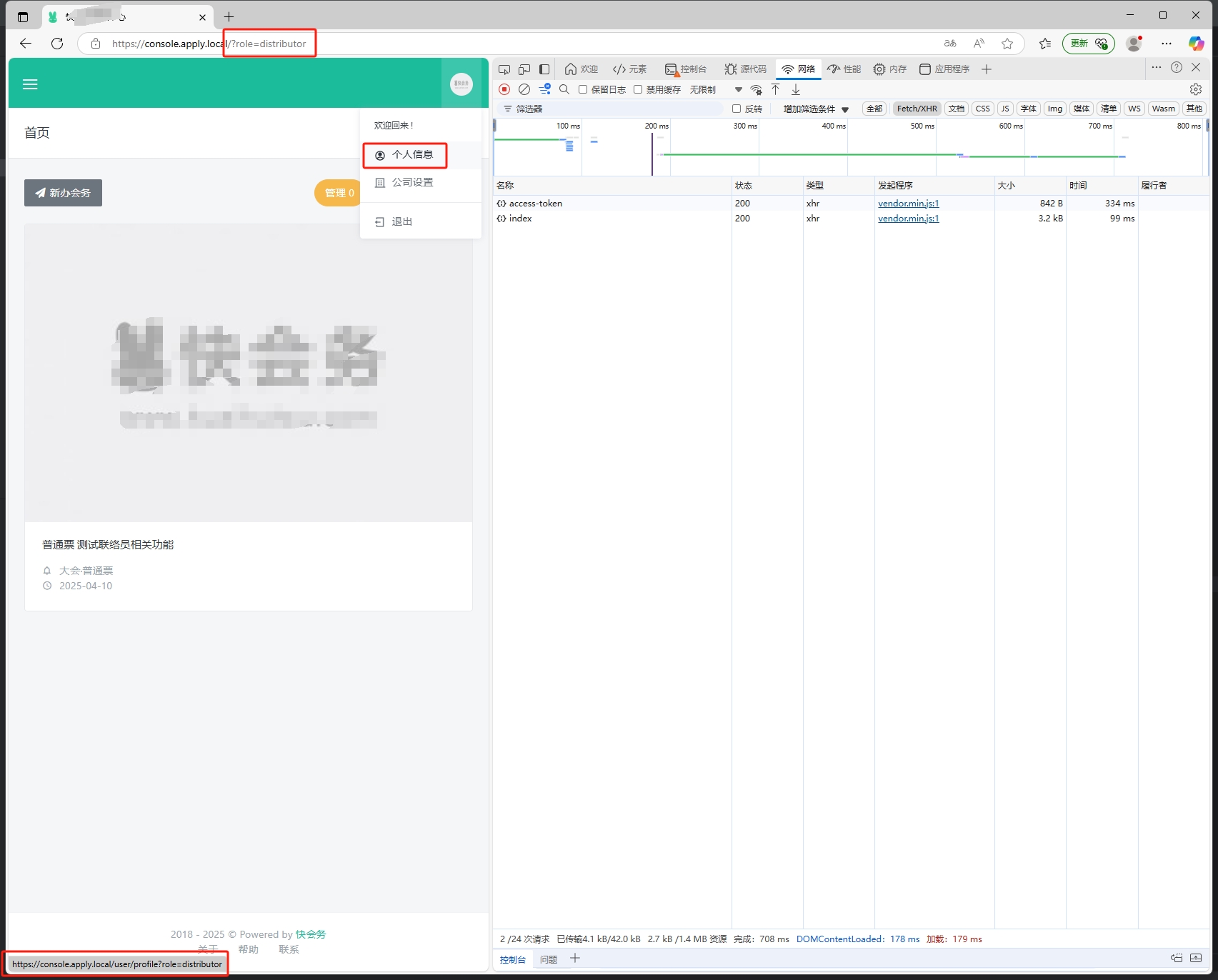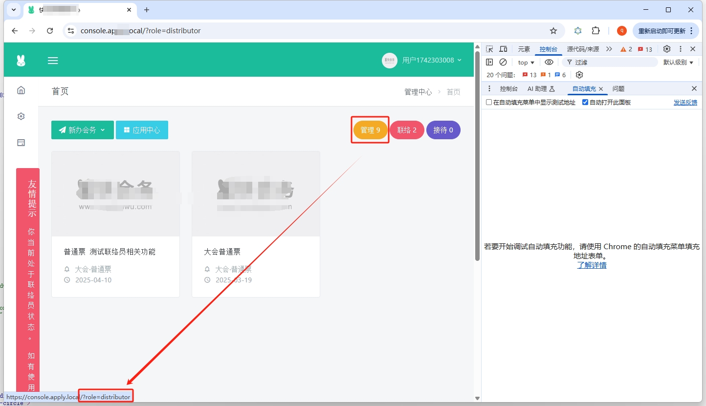 1、现在切换角色为 distributor 的入口链接是后台首页:https://console.apply.local/?role=distributor
