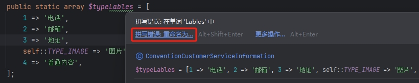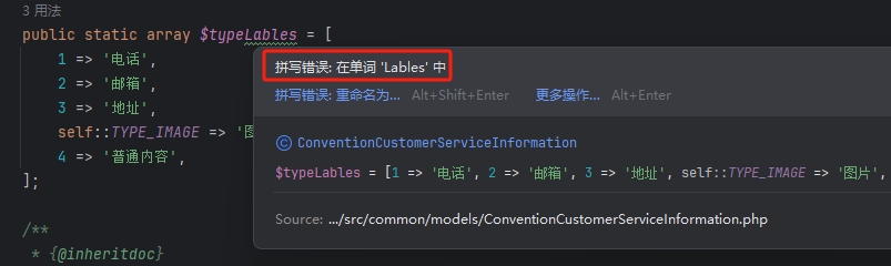 在 PhpStorm 中提示:拼写错误 在单词 ‘Lables’ 中