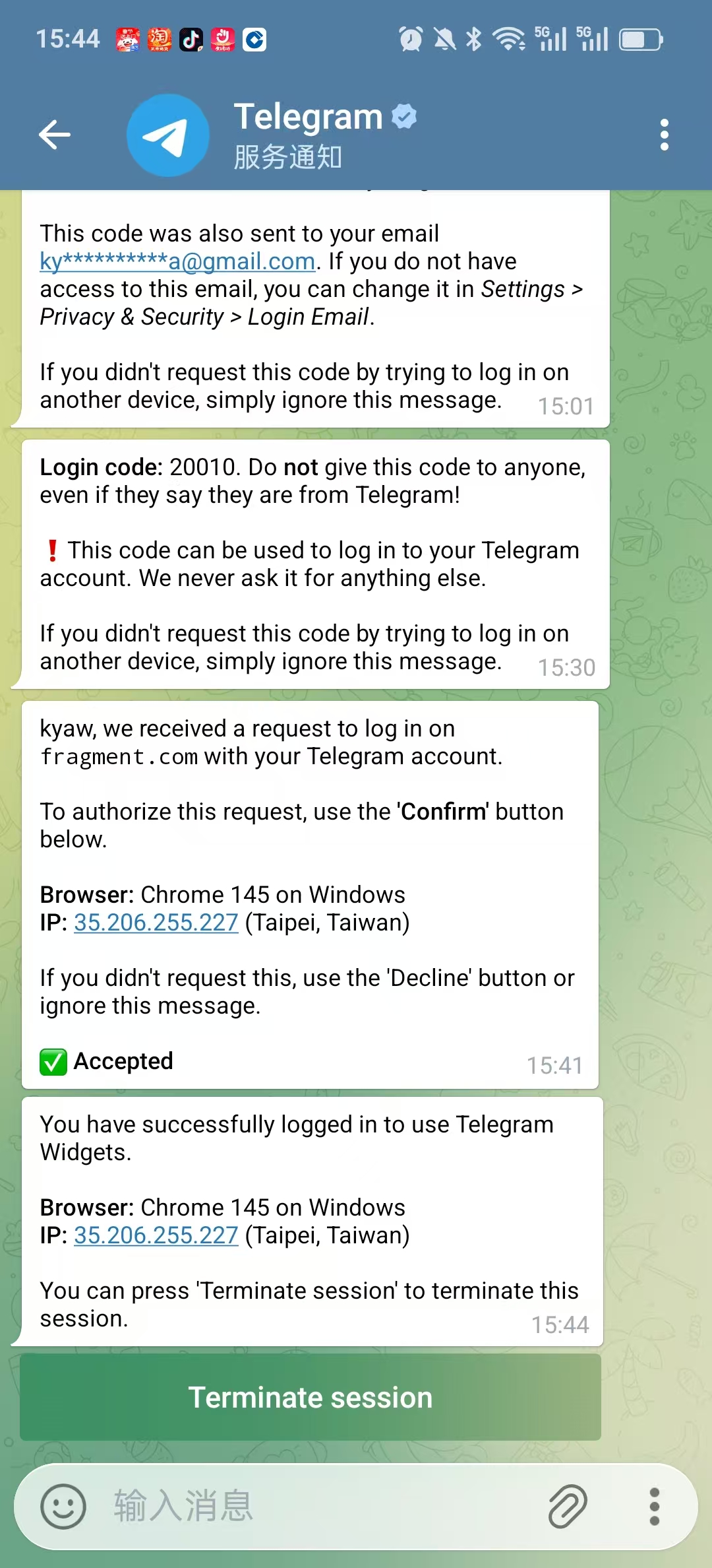 18、那么现在我准备继续在 https://fragment.com 上给 shuijingwan 购买会员了。在使用闲鱼的手机号登录时,需要在 Nagram 点击确认。如图17