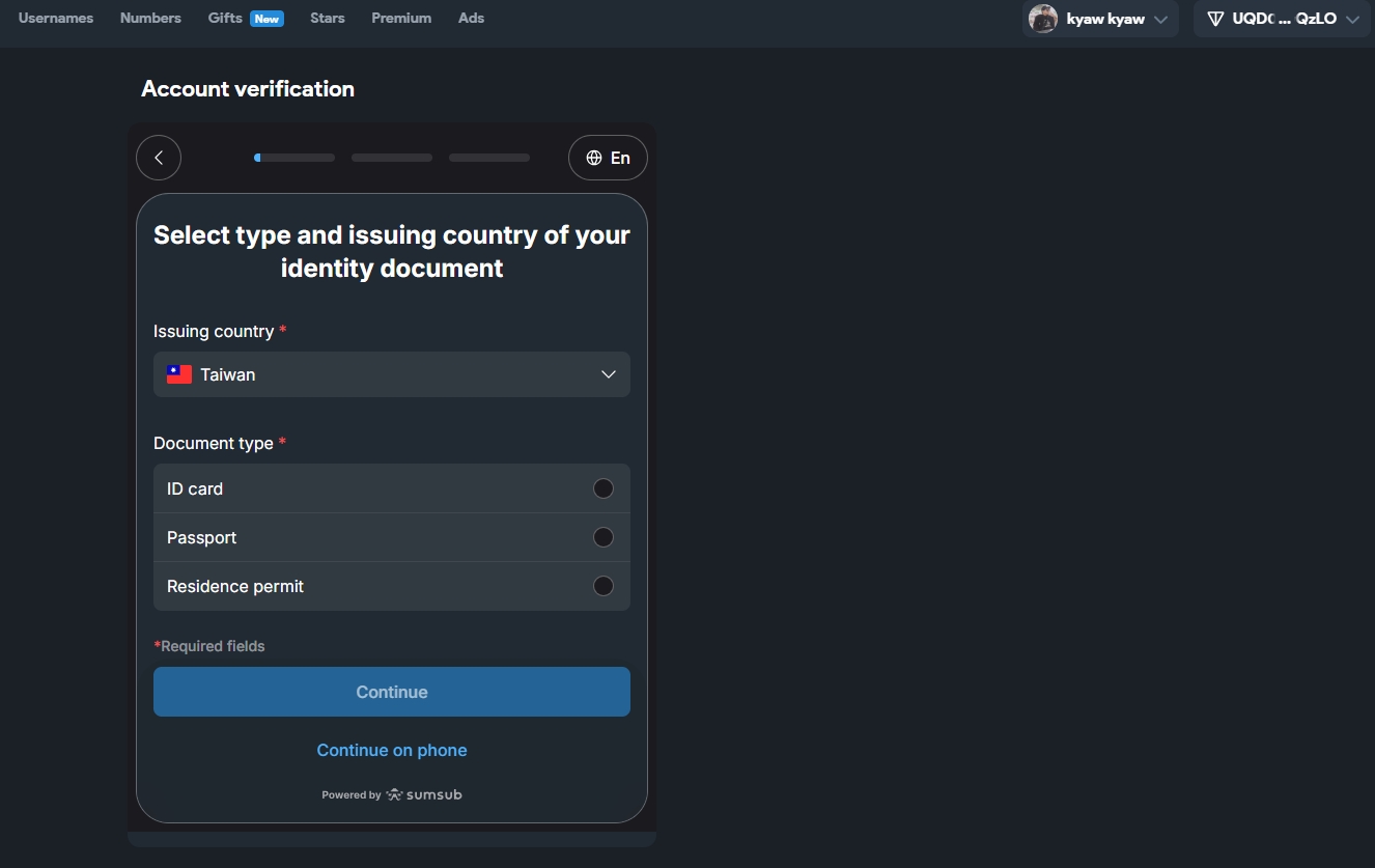 13、操作过程中,提示:需要账号,在继续操作之前,您需要登录您的账号。这不就是一个死循环么?Fragment 要求我先登录 Telegram 才能购买,但我登录 Telegram 又需要 Premium。决定尝试网页登录一下看了。发现要求 Telegram 登录了。