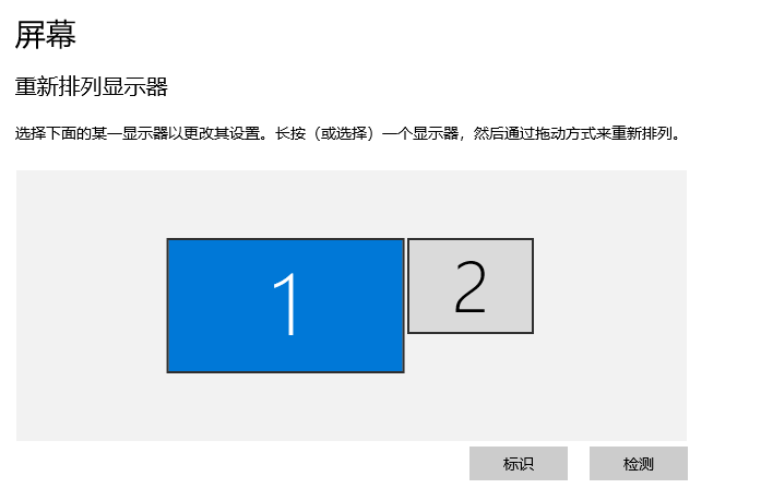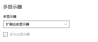 2、最后发现需要在 多显示器 中选择 扩展这些显示器,而不是默认的 复制这些显示器。如图2