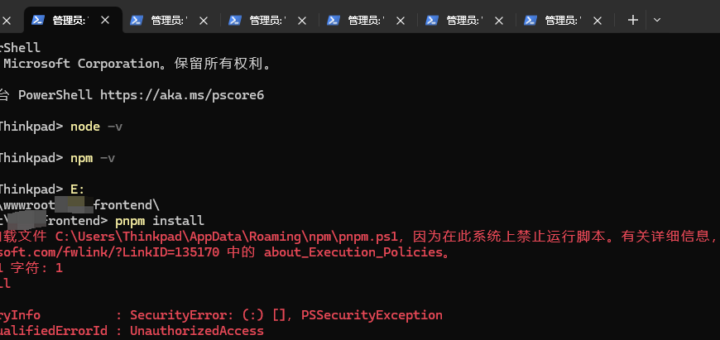 1、pnpm : 无法加载文件 C:\Users\Thinkpad\...