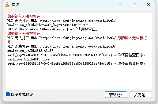 1、在 VLC media player 中打开网络串流报错:您的输...