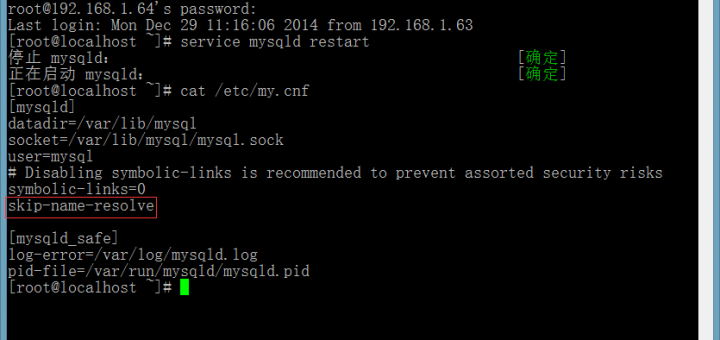 程序在 windows 8.1 64 位下,mysql服务器位于 CentOS 6.5 64 下,连接速度过慢的问题的解决!